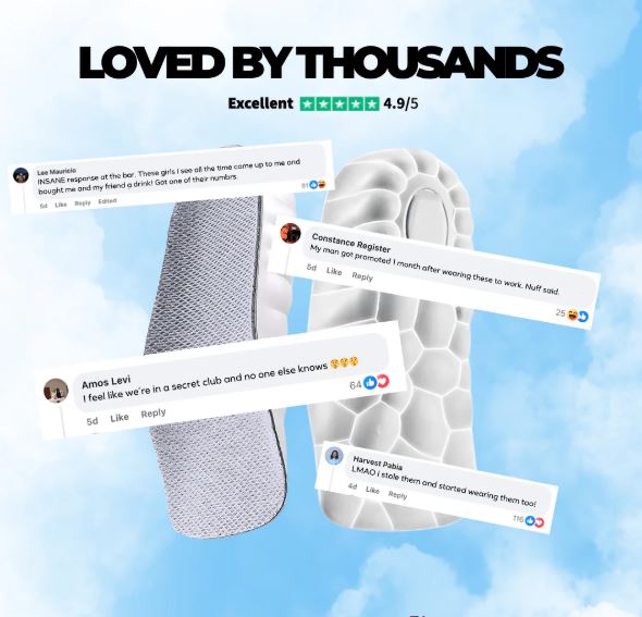 • "Honestly, I didn’t think insoles could make this big of a difference. I feel more confident when I’m out with friends and on dates. Plus, they’re super comfortable, I can wear them all day without noticing."